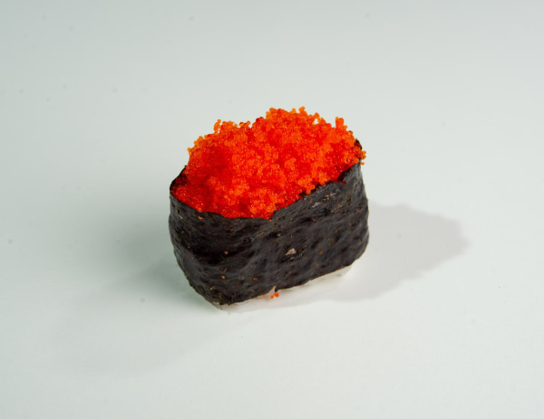 Рис, нори, творожный сыр, огурец, волокна снежного краба, соус спайси, чёрная икра тобико, нити чили