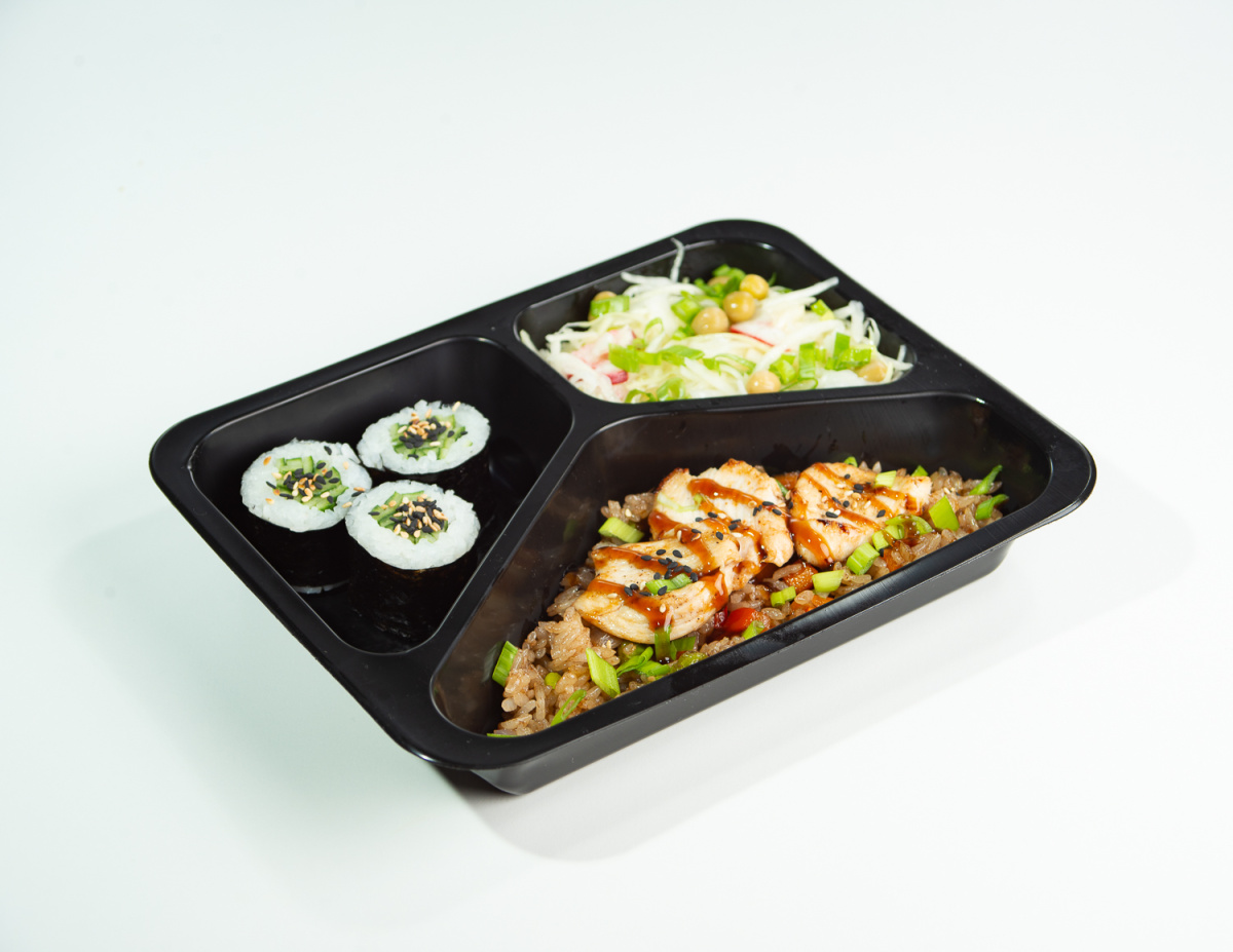 - Ланч Бокс №1 Салат, рис, малый ролл с огурцом