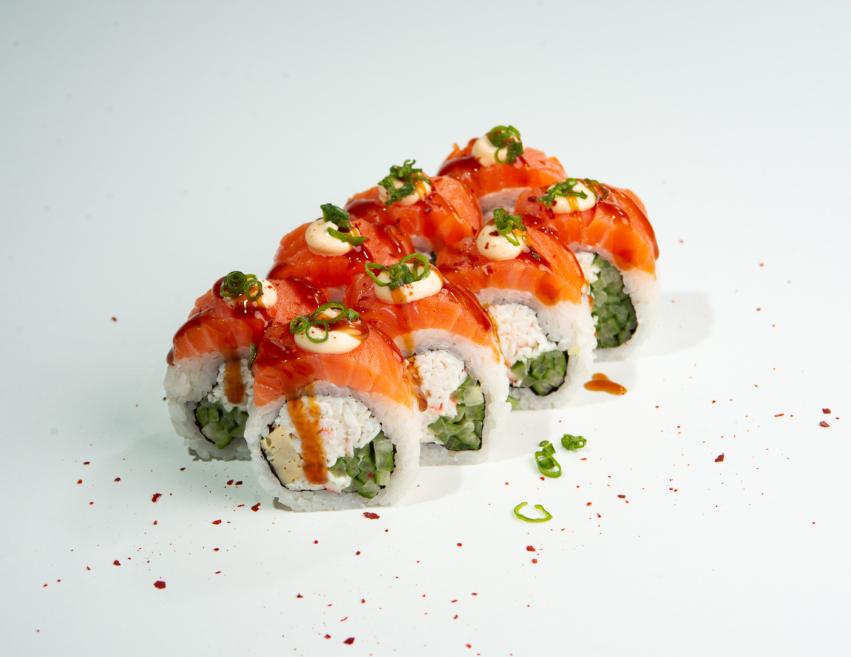- Копчёная филадельфия с омлетом, волокнами снежного краба, огурец (8 шт)