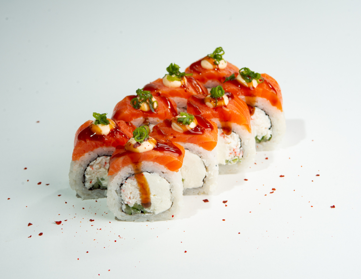 - Копчёная филадельфия с волокнами снежного краба, сыром и огурцом (8 шт)