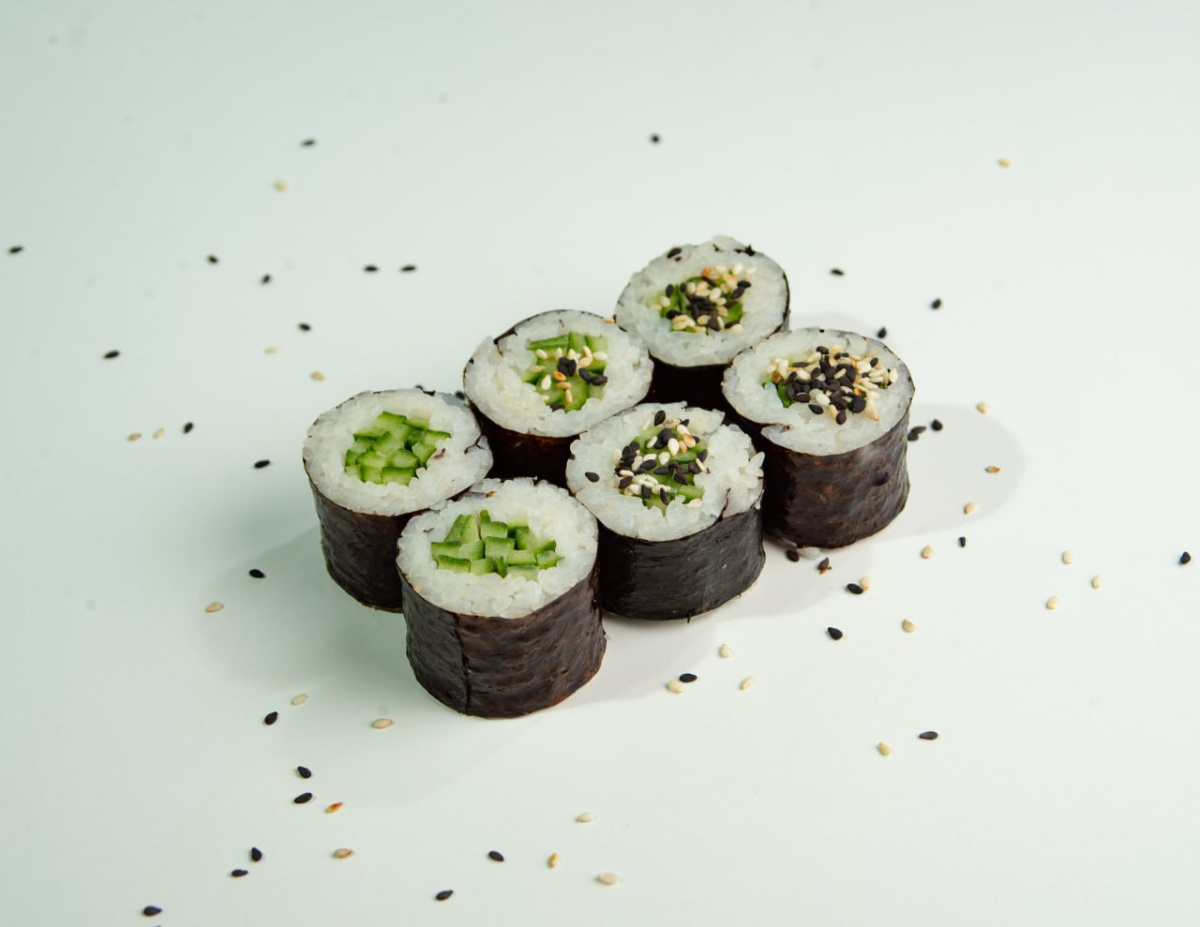 Рис, нори, огурец, кунжут