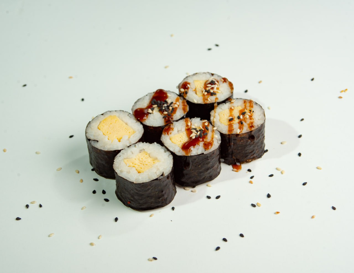 - 7.Малый ролл: с омлетом, соусом унаги(6шт)