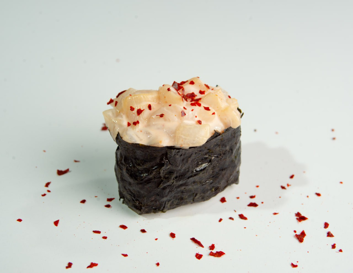 Рис, нори, гребешок, соус спайси, посыпка чили