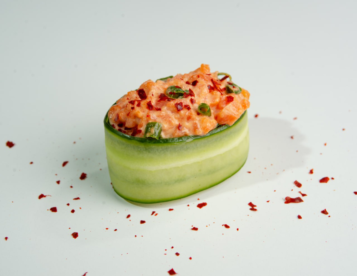 14.Фреш гункан с копчёным лососем, спайси и зелёным луком