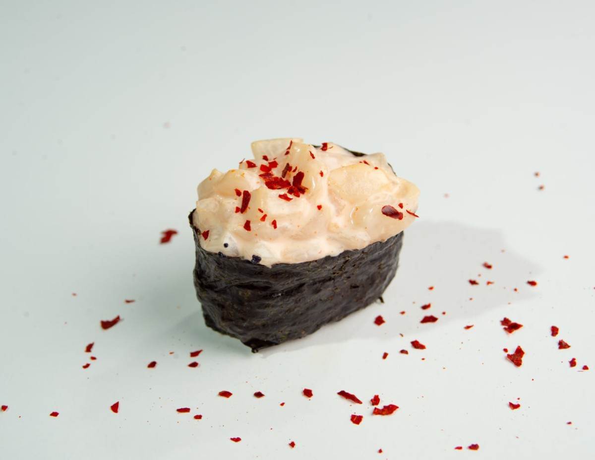 Рис, нори, морской окунь, соус спайси, посыпка чили
