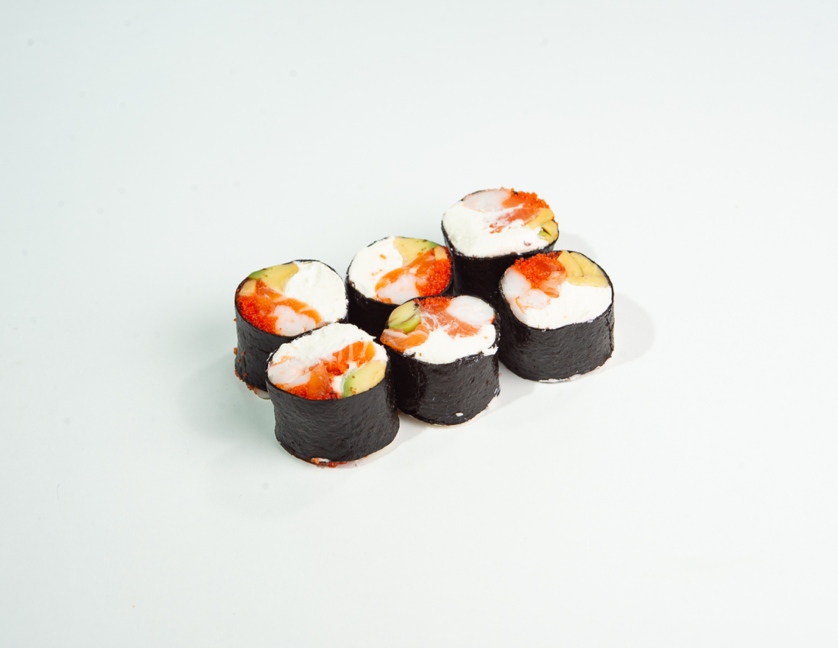 87.Малый без риса: сыр, лосось, тобико, креветка, авокадо(6шт)