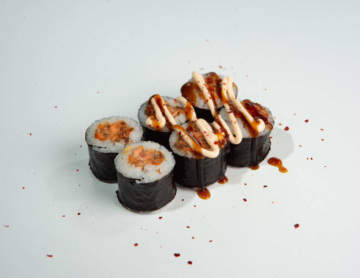 - Малый ролл с жареным лососем (6 шт)