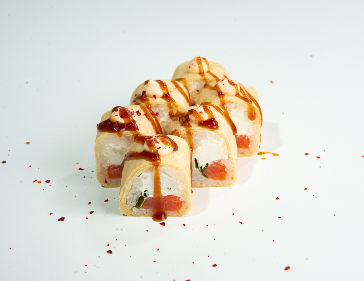 - Малый ролл: тамаго блин с копчёным лососем (6 шт)