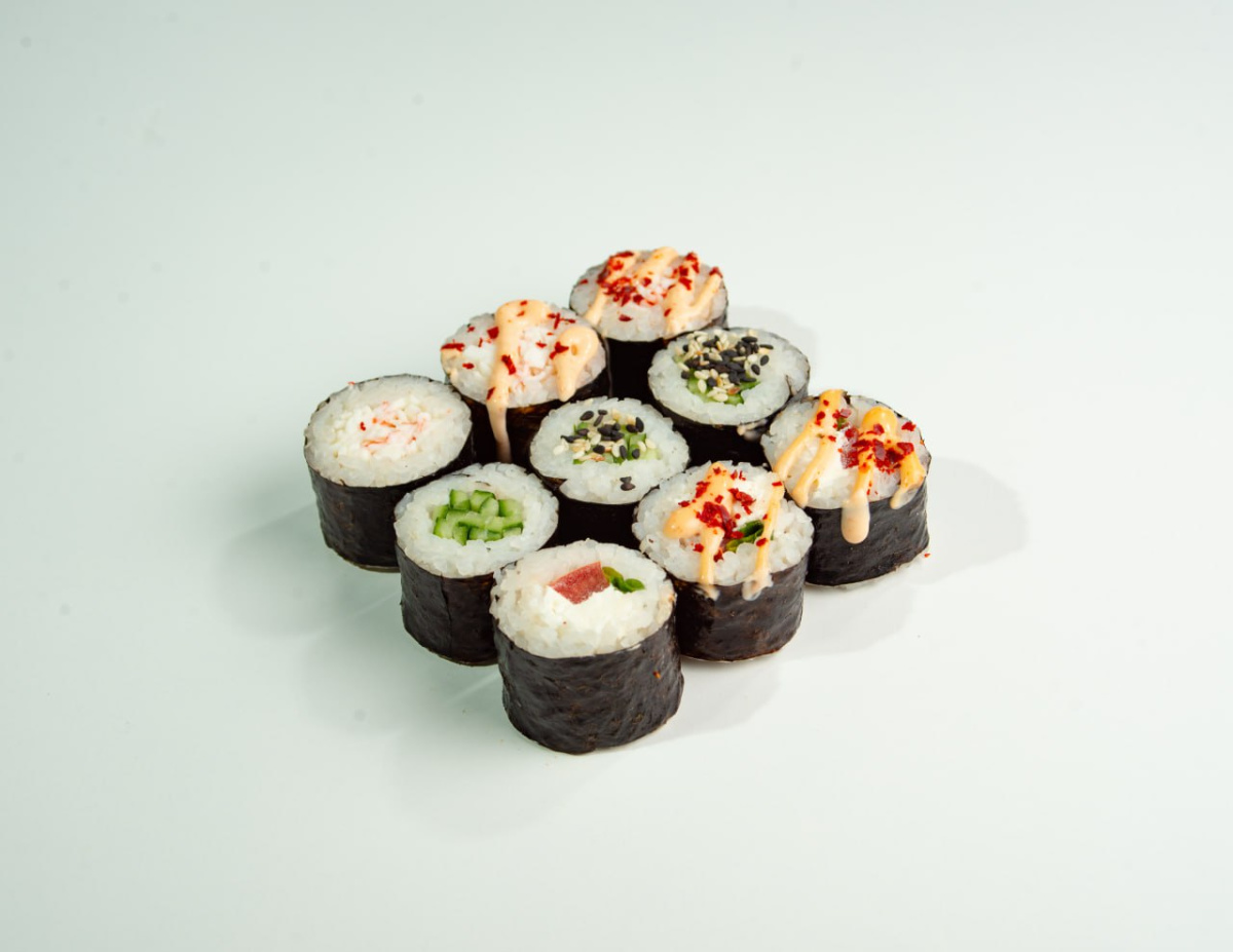 Малый ролл: помидор, сыр, зелёный лук, соус спайси (3 шт),