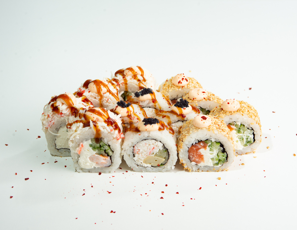 Большой кумите с волокнами снежного краба, омлетом и огурцом (4 шт),