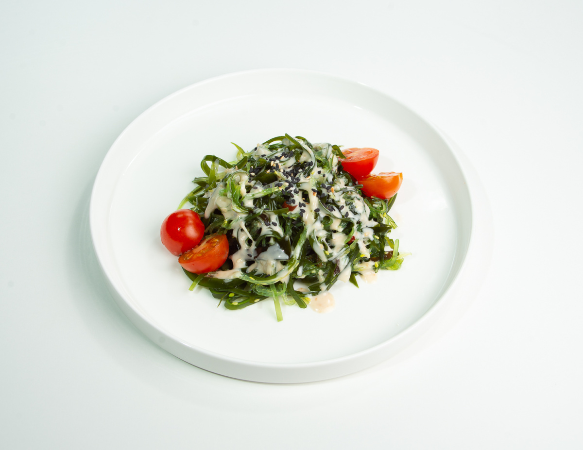 Водоросли чука, помидоры черри, ореховый соус, кунжут