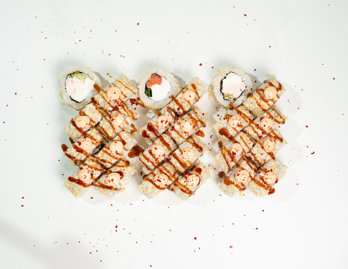 Большой ролл гаянга с волокнами снежного краба (8 шт),