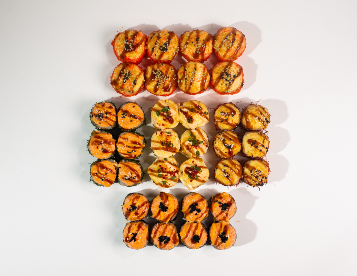 Запечённый с крабом и чёрной икрой тобико (8 шт),