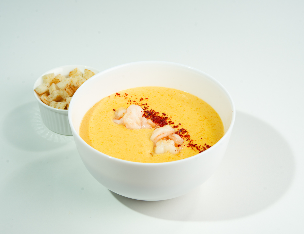 Картофель, морковь, лук, тыква, креветка, паприка, сливки, гренки