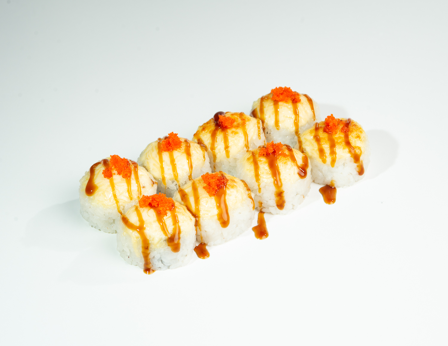 - 30. (4шт)Запеченный ролл с сыром и креветкой