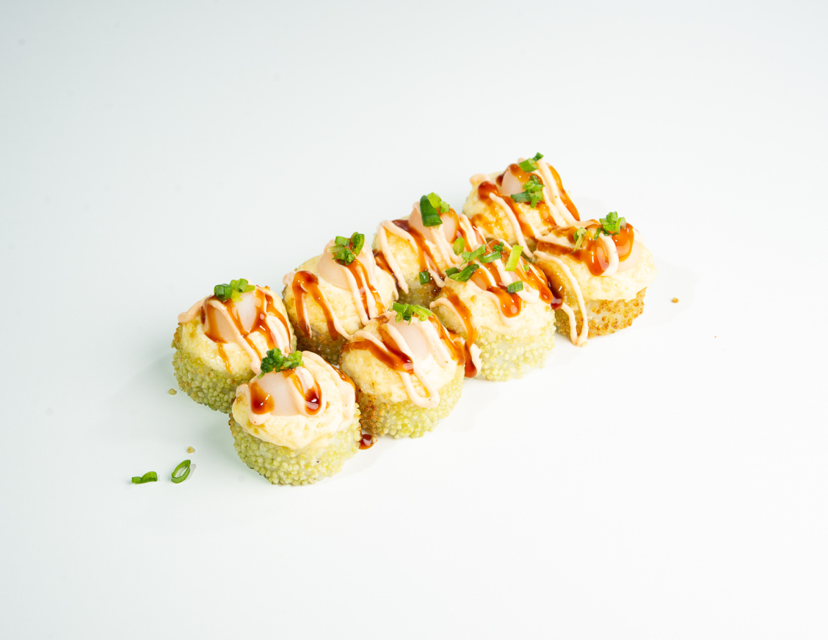 Запечённый ролл с гребешком в васаби шариках (8 шт)
